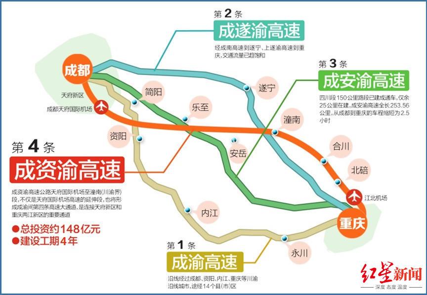 2、资阳段:资阳段的设置使得成资潼高速与成渝地区其他交通网络相互贯通,提高了区域的交通通达度。