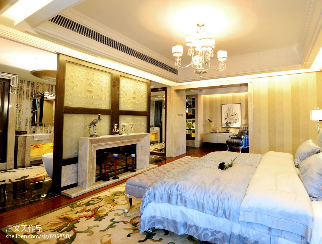 3、山水系列吊顶:将美丽的山水景色融入卧室,让我们仿佛置身于青山绿水之间,感受大自然的和谐与美丽,这样的吊顶设计让我们暂时忘却尘世的纷扰,享受内心的平静与安宁。